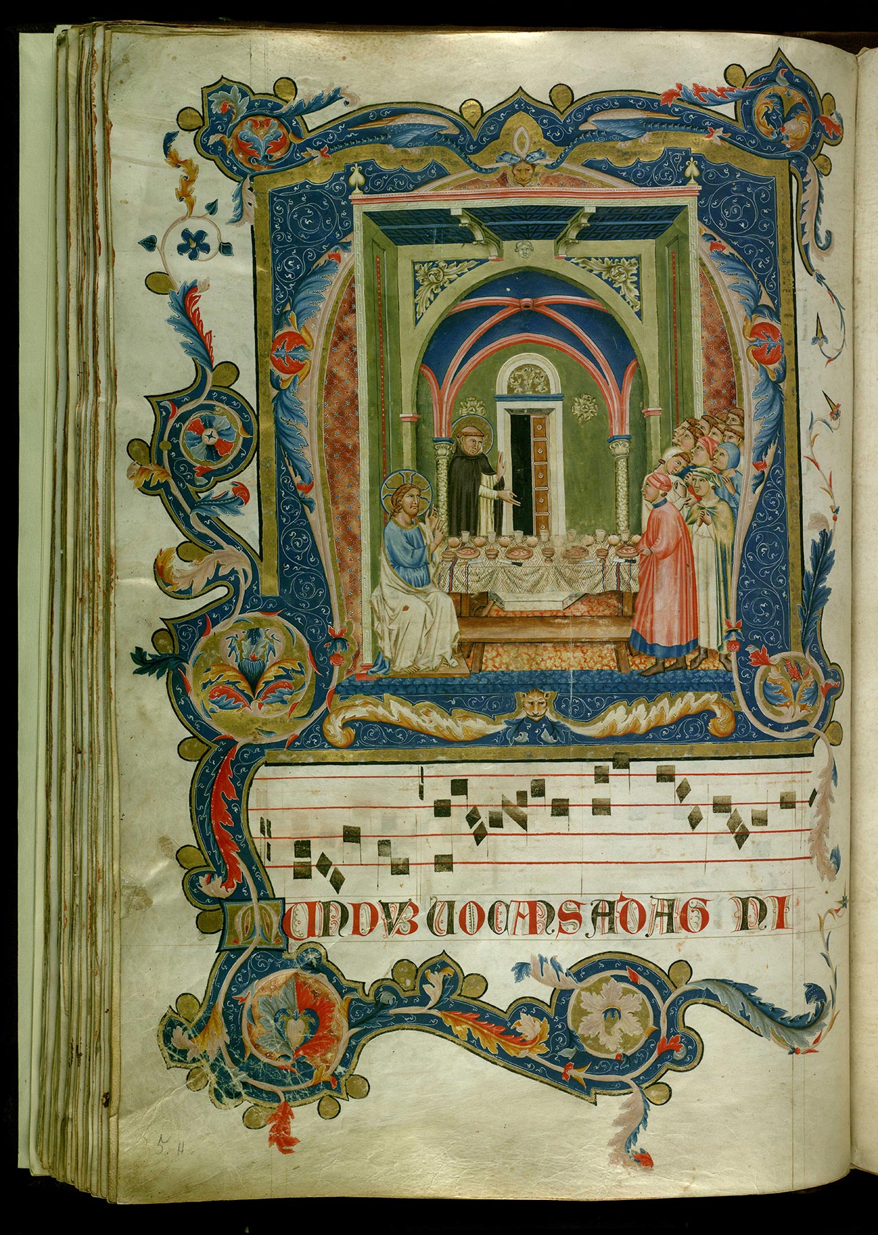Alessandro Conti was the first author to advance a substantive proposal for identifying the Master of the Gubbio Cross with another known artist and amalgamating their two oeuvres.7 Responding to an observation put forward earlier by Roberto Longhi, that miniaturists in Perugia forged a visual language widely imitated by monumental painters there,8 Conti proposed as an example that the artist identified by Longhi as the “Primo Miniatore Perugino”—author of a series of illuminations in the choir books from San Domenico in Perugia, now preserved in the Biblioteca Augusta there—was probably the same as the Gubbio Cross Master. Conti’s suggestion has been accepted in totum only by one subsequent writer, Marina Subbioni,9 but it has formed the basis for discussions by numerous authors who reject the identification. In a variant of the argument, Filippo Todini identifies three distinct hands at work on the San Domenico choir books, a Primo Miniatore Perugino, a Secondo Miniatore Perugino, and a third artist whom he identifies as Marino da Perugia (Marino di Elemosina di Forte, documented 1309–10).10 For Todini, the Secondo Miniatore Perugino, not the Primo Miniatore, is sufficiently similar in style to the Gubbio Cross Master that the two artists might be one. Elvio Lunghi rejects both these contentions.11 He identifies only two hands among the San Domenico choir books. One, the Primo Miniatore Perugino, is decidedly archaic and was probably of an older generation than the other. For Lunghi, the second artist is an amalgamation of Todini’s Secondo Miniatore and Marino da Perugia, presumably working on the project over a long arc of time, beginning with the reconsecration of the expanded church of San Domenico in 1304 and concluding at an unknown date prior to 1321. In that year, the Feast of Corpus Domini was officially embraced by the Dominican order, but it is not included among the original texts in these choir books. Lunghi, furthermore, advances a hypothetical identification of the Primo Miniatore Perugino as Marino da Perugia’s father, Elemosina di Forte da Perugia (documented 1289–1312). This proposal was seconded by Marta Minazzato, who pointed out that both Marino and Elemosina are cited as painters and as miniaturists in documents.12