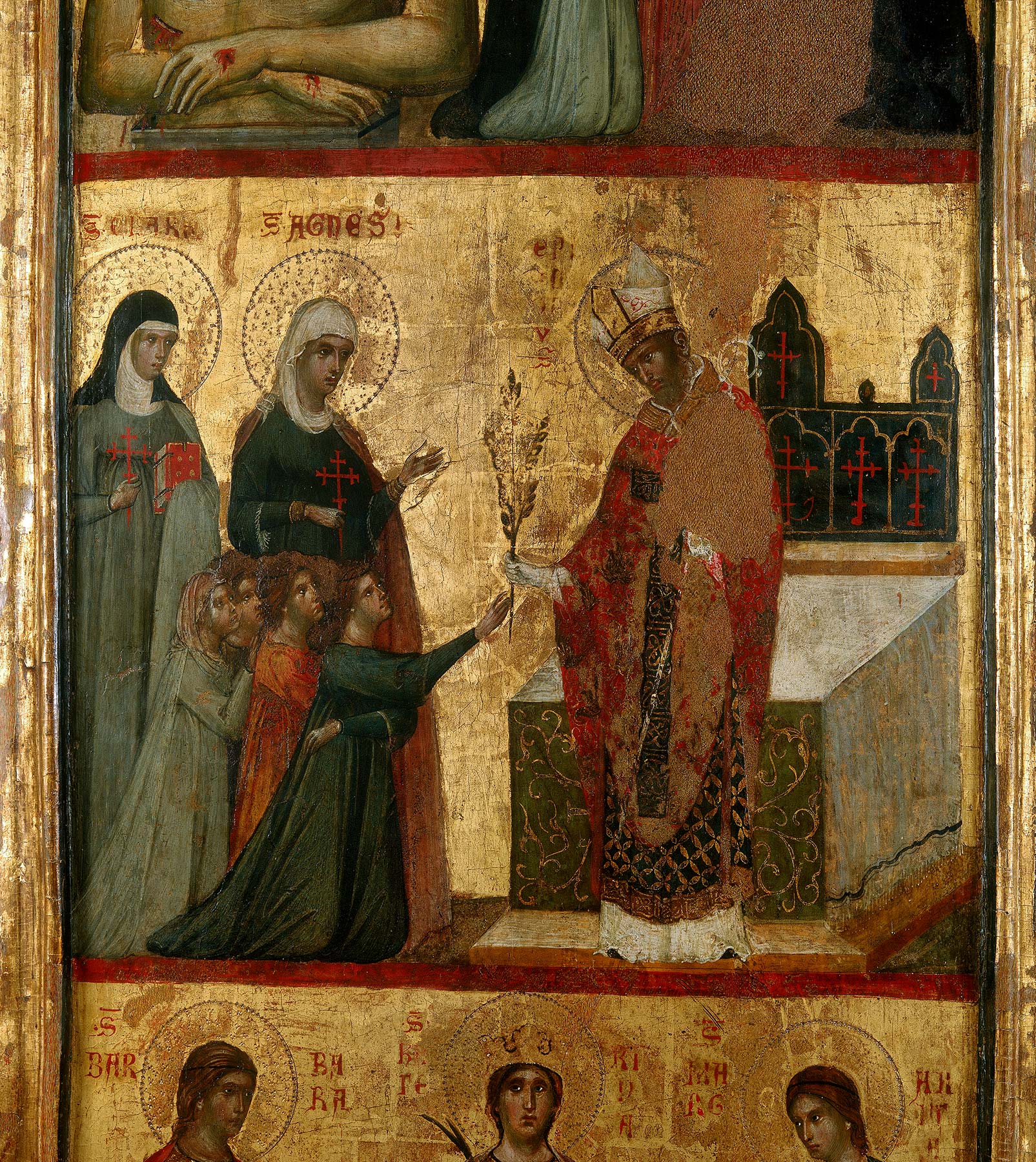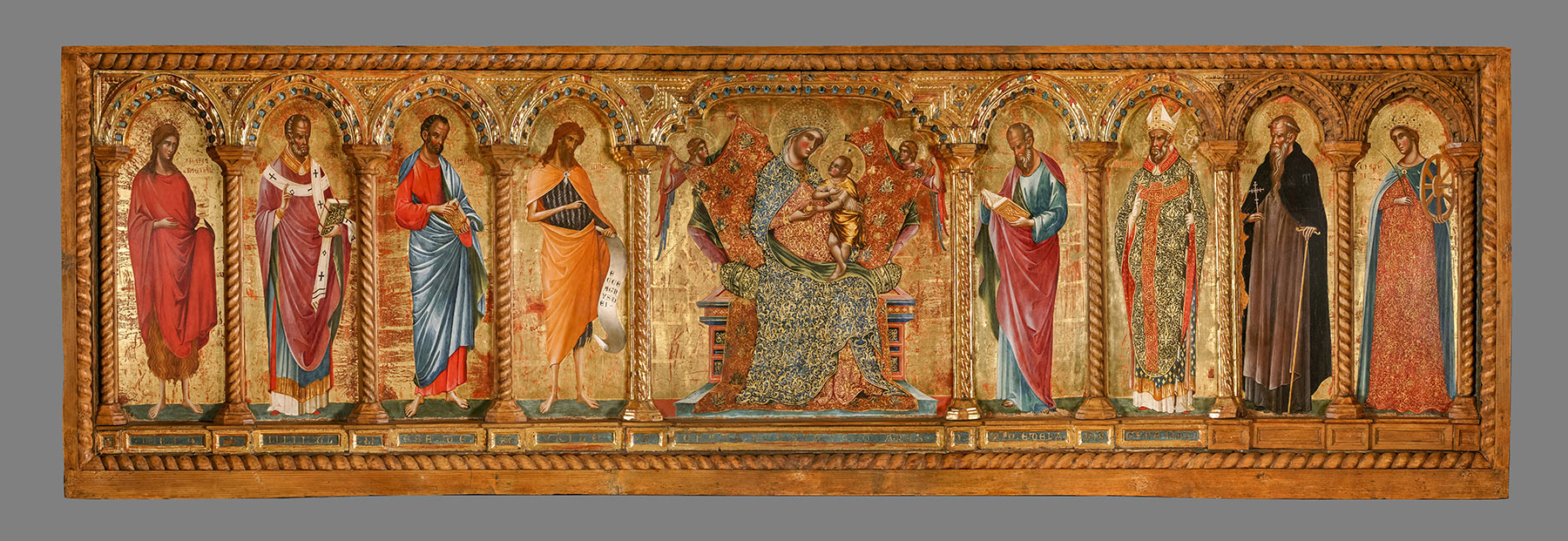 Inv. no. 1927.19.6a, https://worcester.emuseum.com/objects/29796/saint-john-the-baptist. The triptych is currently divided between the Worcester Art Museum, Massachusetts; the National Gallery of Art, Washington, D.C., inv. no. 1939.1.143, https://purl.org/nga/collection/artobject/284; and the Musée du Petit Palais, Avignon, France, inv. no. 20194. See Boskovits, Miklós. Italian Paintings of the Thirteenth and Fourteenth Centuries. Washington, D.C.: National Gallery of Art, 2016. NGA Online Editions, https://www.nga.gov/research/online-editions/italian-paintings-of-the-thirteenth-and-fourteenth-centuries.html., 325–33 (with previous bibliography). ↩︎