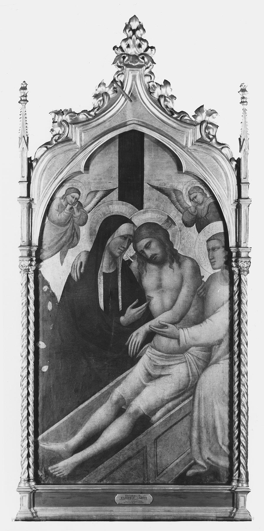 Jarves, James Jackson. Descriptive Catalogue of “Old Masters” Collected by James J. Jarves to Illustrate the History of Painting from A.D. 1200 to the Best Periods of Italian Art. Cambridge, Mass.: H. O. Houghton, 1860., 43, no. 16; Jarves, James Jackson. Art Studies: The “Old Masters” of Italy; Painting. New York: Derby and Jackson, 1861., pl. B, fig. 5 (engraving); Sturgis, Russell, Jr. Manual of the Jarves Collection of Early Italian Pictures. New Haven: Yale College, 1868., 32–33; W. F. Brown, Boston. Catalogue of the Jarves Collection of Early Italian Pictures. Sale cat. November 9, 1871., 14, no. 17; Rankin, William. “Some Early Italian Pictures in the Jarves Collection of the Yale School of Fine Arts at New Haven.” American Journal of Archaeology 10, no. 2 (April–June 1895): 137–51., 140; Sirén, Osvald. “Trecento Pictures in American Collections—I.” Burlington Magazine 14, no. 68 (November 1908): 125–26., 126, pl. 2; Sirén, Osvald. A Descriptive Catalogue of the Pictures in the Jarves Collection Belonging to Yale University. New Haven: Yale University Press, 1916., 27–28, no. 8; Sirén, Osvald. Giotto and Some of His Followers. Trans. Frederic Schenck. 2 vols. Cambridge, Mass.: Harvard University Press, 1917., 1:156, 269; Kreplin, Bernd Curt. “Taddeo Gaddi.” In Allgemeines Lexikon der bildenden Künstler: Von der Antike bis zur Gegenwart, ed. Ulrich Thieme and Felix Becker. Leipzig, Germany: E. A. Seemann, 1920., 13:32; van Marle, Raimond. The Development of the Italian Schools of Painting. Vol. 3. The Hague: M. Nijhoff, 1924., 342–43; Offner, Richard. Italian Primitives at Yale University: Comments and Revisions. New Haven: Yale University Press, 1927., 3, 19, fig. 10; Berenson, Bernard. Italian Pictures of the Renaissance: A List of the Principal Artists and Their Works with an Index of Places. Oxford: Clarendon, 1932., 215; Venturi, Lionello. Italian Paintings in America. Trans. Countess Vanden Heuvel and Charles Marriott. 3 vols. New York: E. Weyhe, 1933., 1: pl. 51; Berenson, Bernard. Pitture italiane del Rinascimento: Catalogo dei principali artisti e delle loro opere. Trans. Emilio Cecchi. Milan: Ulrico Hoepli, 1936., 185; Comstock, Helen. “The Yale Collection of Italian Paintings.” Connoisseur 118 (September 1946): 45–52., 47; Antal, Frederick. Florentine Painting and Its Social Background. London: Kegan Paul, 1948., 219n66, 226n141; Meiss, Millard. Painting in Florence and Siena after the Black Death: The Arts, Religion, and Society in the Mid-Fourteenth Century. Princeton, N.J.: Princeton University Press, 1951., 56n165; Steegmuller, Francis. The Two Lives of James Jackson Jarves. New Haven: Yale University Press, 1951., 294; Rediscovered Italian Paintings. Exh. cat. New Haven: Yale University Art Gallery, 1952., 14–15; Berenson, Bernard. Italian Pictures of the Renaissance, A List of the Principal Artists and Their Works with an Index of Places: Florentine School. 2 vols. London: Phaidon, 1963., 1:71; Offner, Richard, and Klara Steinweg. A Critical and Historical Corpus of Florentine Painting. Sec. 4, vol. 4, Giovanni del Biondo, pt. 2. New York: Locust Valley, 1969., 31; Seymour, Charles, Jr. Early Italian Paintings in the Yale University Art Gallery. New Haven: Yale University Art Gallery, 1970., 40–42, no. 24; Fredericksen, Burton B., and Federico Zeri. Census of Pre-Nineteenth-Century Italian Paintings in North American Public Collections. Cambridge, Mass.: Harvard University Press, 1972., 77; Gloria Kury Keach, in Seymour, Charles, Jr., et al. Italian Primitives: The Case History of a Collection and Its Conservation. Exh. cat. New Haven: Yale University Art Gallery, 1972., 16–17, no. 7, figs. 7a–c; Ferretti, Massimo. “Una croce a Lucca, Taddeo Gaddi, un nodo di tradizione giottesca.” Paragone 27, nos. 317–19 (July–September 1976): 19–40., 25; La Favia, Louis Marcello. The Man of Sorrows and Its Origin and Development in Trecento Florentine Painting. Rome: Sanguis, 1980., 105n51; Offner, Richard. A Critical and Historical Corpus of Florentine Painting: The Fourteenth Century. Supplement: A Legacy of Attributions. Ed. Hayden B. J. Maginnis. New York: Institute of Fine Arts, New York University, 1981., 69; Ladis, Andrew. Taddeo Gaddi: Critical Reappraisal and Catalogue Raisonné. Columbia: University of Missouri Press, 1982., 73, 170, 186, 190, 205, 240–41, no. 62; Neri Lusanna, Enrica. “Taddeo Gaddi.” In Enciclopedia dell’arte medievale. Rome: Istituto della Enciclopedia Italiana, 1995. https://www.treccani.it/enciclopedia/taddeo-gaddi_(Enciclopedia-dell’-Arte-Medievale)/.; Labriola, Ada. “Gaddi, Taddeo.” In Dizionario biografico degli italiani. Rome: Istituto della Enciclopedia Italiana, 1998. https://www.treccani.it/enciclopedia/taddeo-gaddi_(Dizionario-Biografico)/.; Barbara Deimling, in Pasquinucci, Simona, and Barbara Deimling. A Critical and Historical Corpus of Florentine Painting. Sec. 4, vol. 8, Tradition and Innovation in Florentine Trecento Painting: Giovanni Bonsi–Tommaso del Mazza. Ed. Miklós Boskovits. Florence: Giunti, 2000., 131, 134, 340n2, fig. 10; Dean, Clay. A Selection of Early Italian Paintings from the Yale University Art Gallery. New Haven: Yale University Art Gallery, 2001., 24–25, no. 5; Strehlke, Carl Brandon. “Changing Perceptions about the Conservation of Early Italian Paintings and Its Usefulness to Art Historical Research.” In Early Italian Paintings: Approaches to Conservation; Proceedings of a Symposium at the Yale University Art Gallery, April 2002, ed. Patricia Sherwin Garland, 132–44. New Haven: Yale University Art Gallery, 2003., 141–43, 155, pl. 25, fig. 9.6; Daniela Parenti, in Parenti, Daniela, ed. Giovanni da Milano: Capolavori del gotico fra Lombardia e Toscana. Exh. cat. Florence: Giunti, 2008., 232, 234; Gordon, Dillian. The Italian Paintings before 1400. National Gallery Catalogues. London: National Gallery, 2011., 377; Dominique Thiéba