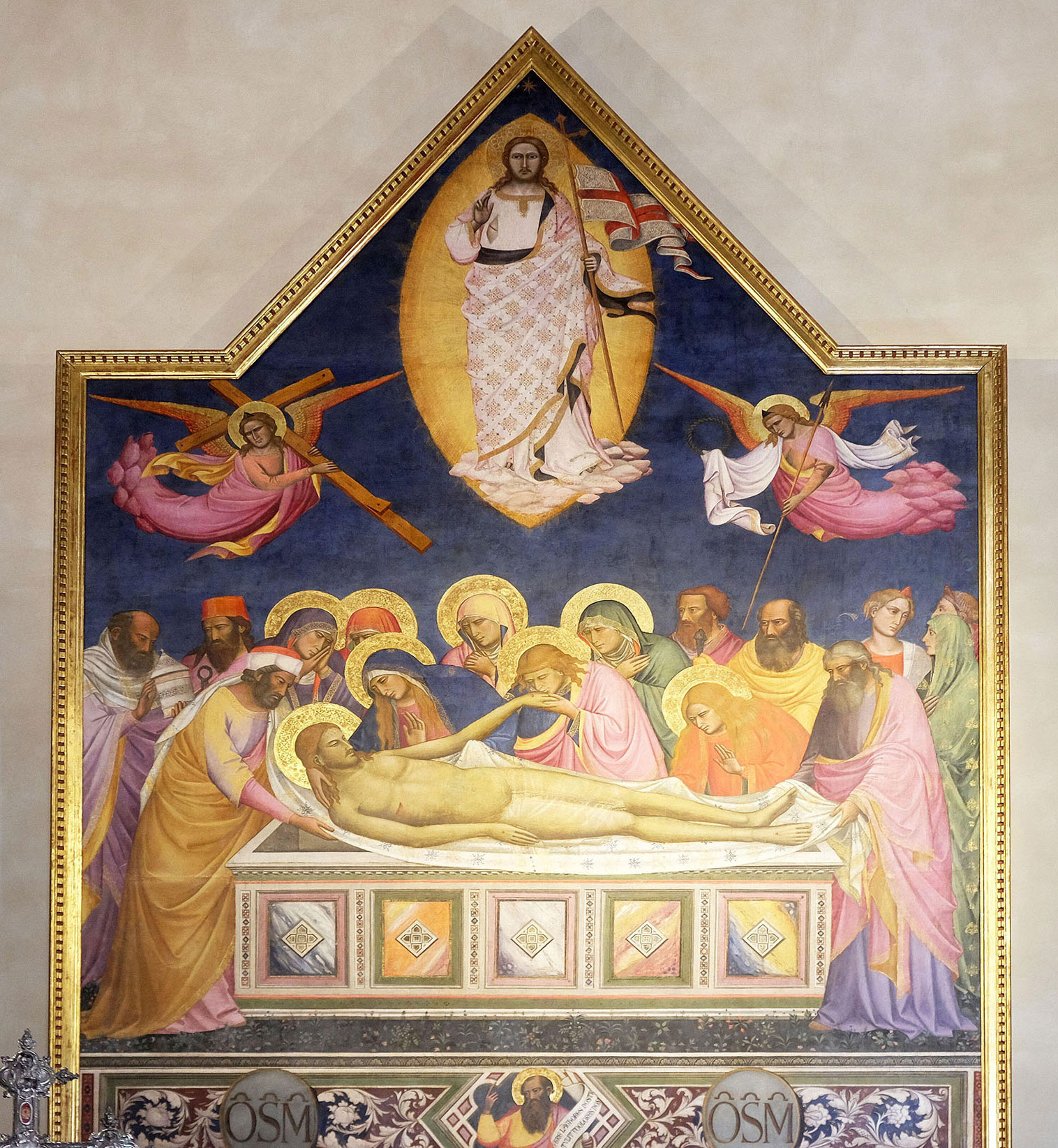 The massively square proportions of the Yale Angel closely approach the monumental figures of Gerini’s Transit of the Virgin in the Galleria Nazionale, Parma (fig. 2), attributed by Offner to a follower of the painter but now recognized as among his earliest efforts and dated between 1370 and 1375.10 Other elements, such as the strong chiaroscuro and more angular, narrower features, recall the later Entombment in the church of San Carlo dei Lombardi, Florence (fig. 3), datable on circumstantial evidence around 1381–83.11 Comparisons may also be drawn with some of the images usually gathered around the Coronation of the Virgin in the tabernacle of the Arte della Lana, Florence—a work formerly viewed as the product of a distinct personality in Gerini’s workshop, christened by Berenson “Master of the Arte della Lana” but since regarded as marking a distinct moment in Niccolò’s activity around 1380. The structure of the throne, in particular, very nearly corresponds to that of the Arte della Lana Coronation, as well as that in the closely related Trinity with Saints Francis and Mary Magdalen in the Galleria dell’Accademia, Florence,12 both of which are dated by modern scholarship between 1380 and 1385. The more static quality of the Yale Annunciation vis-à-vis the latter works, however, denotes a slightly earlier execution. Bearing in mind the limitations inherent in establishing a precise framework for the evolution of the painter’s style during the 1370s and early 1380s, these correspondences suggest that the chronological parameters proposed by Boskovits for the execution of the Yale Annunciation, between around 1375 and 1380—following in the footsteps of the Ponce Annunciation—are entirely plausible.