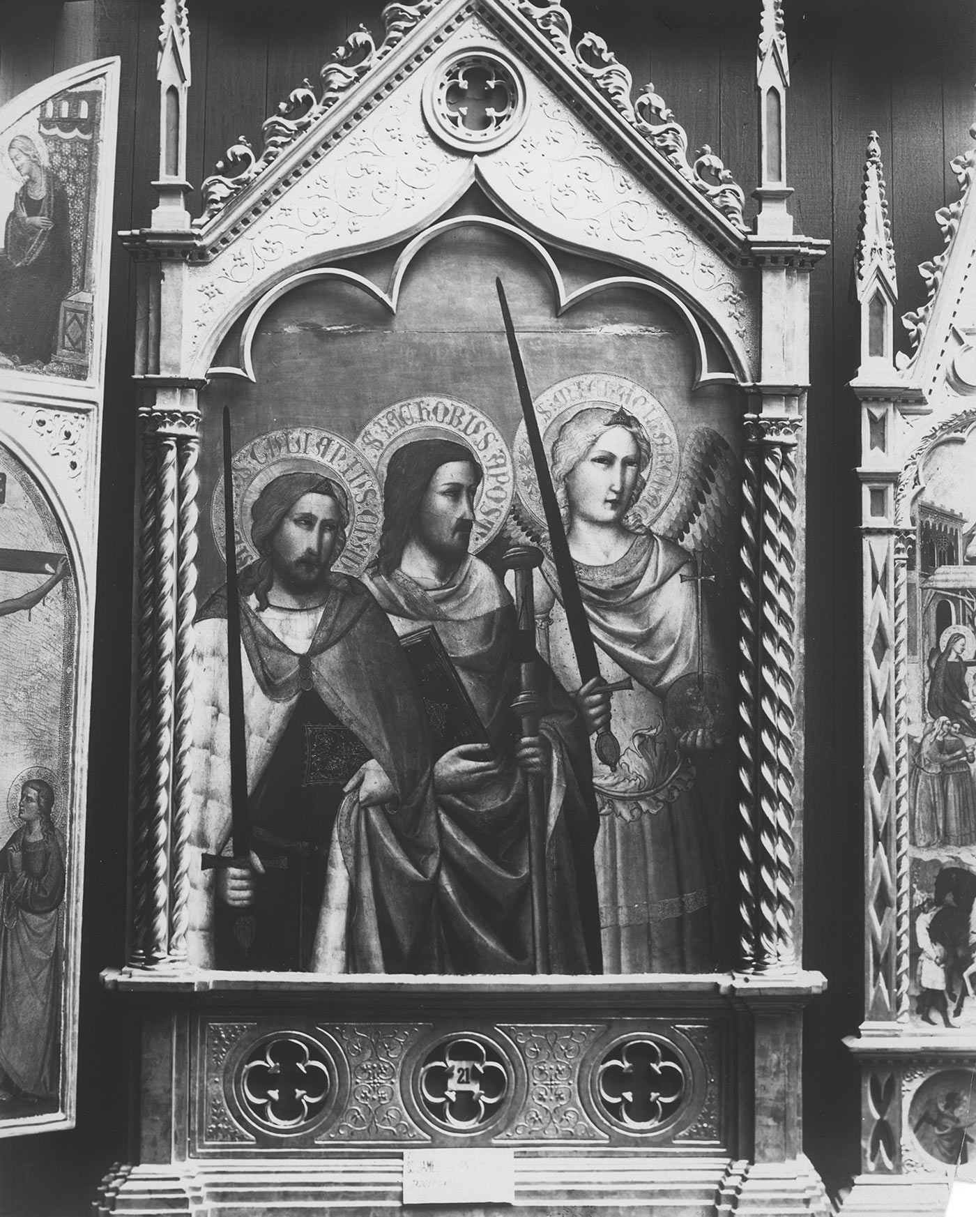 Following initial generic attributions to Taddeo Gaddi1 or, more vaguely and dismissively, to an unknown Giottesque painter,2 the Yale Saints Julian, James Major, and Michael has been universally recognized as a work from the circle of Agnolo Gaddi. It was first labeled with the name Gherardo Starnina,3 when that artist was believed to have been a follower of Gaddi responsible for, among other things, the Castellani Chapel frescoes in Santa Croce and an altarpiece triptych in Berlin (see fig. 5), the Gaddesque work most closely related in style to the Yale panel. Richard Offner more prudently and evasively called it simply a product of Agnolo Gaddi’s workshop,4 while Bernard Berenson, Hans Gronau, Charles Seymour, Jr., Federico Zeri, and Miklós Boskovits accepted an attribution to Agnolo Gaddi without qualification.5 Bruce Cole and Andrew Ladis returned to Offner’s model of identifying a small number of autograph creations by Agnolo Gaddi within a large orbit of workshop imitations; both Cole and Ladis included the Yale panel among the latter.6