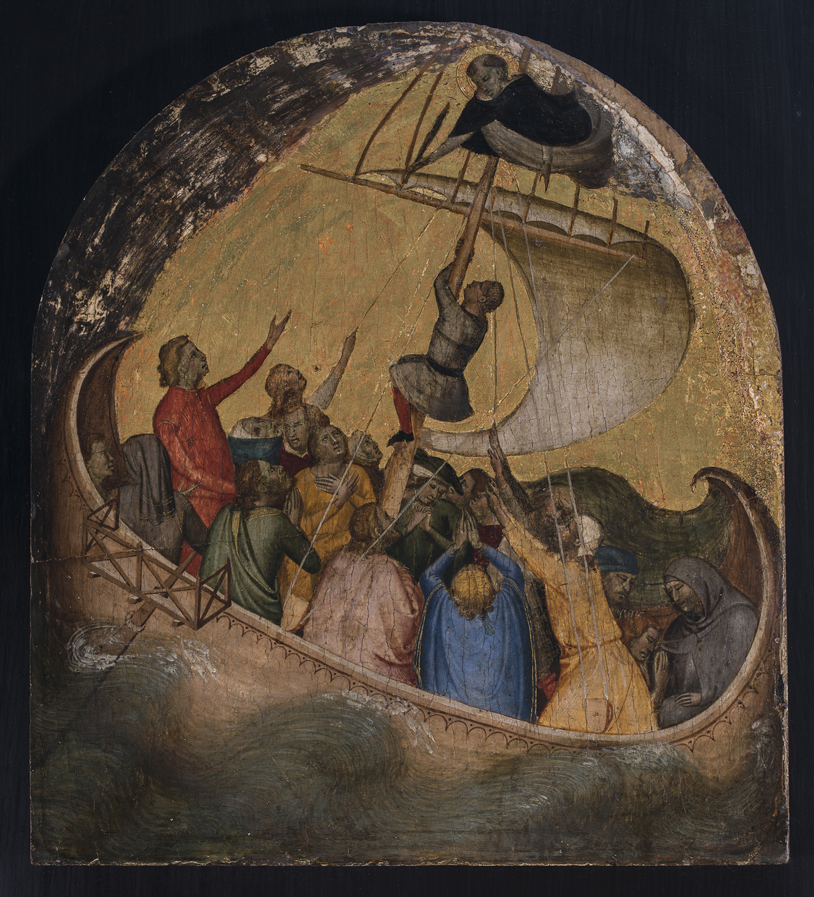 Before the Yale Vision of Saint Dominic was firmly associated with Bernardo Daddi, Bernard Berenson recognized a companion panel to it in a scene of Saint Dominic rescuing a ship at sea formerly in the Raczynski collection in Berlin, now in the Muzeum Narodowe in Poznań, Poland (fig. 3).10 Unaware of the connection between these two panels, Sirén called attention to a painting in the Musée des Arts Décoratifs, Paris, showing Saint Peter Martyr preaching (fig. 4), that, he believed, must also have formed, with the Yale panel, “part of a predella under a picture with the two above-mentioned Dominican saints (St. Dominic and St. Peter Martyr) probably together with one or more other saints.”11 Sirén further proposed that, “although we cannot yet know how the whole picture was composed (because the principal parts are lacking), it does not seem too daring to make the supposition that it was identical with a picture which, according to a notice in the ‘Sepoltuario del Rosselli,’ Vol. ii, p. 739, once hung in Sta. Maria Novella in Florence, and bore the following inscription: ‘Pro animabus parentum fratris Guidonis Salvi et pro anima domine Diane de Casinis Anno MCCCXXXVIII. Bernardus me pinxit’” (For the souls of the family of fra Guido Salvi and for the soul of Lady Diana Casini, Bernardo painted me in the year 1338).12 This tentative proposal has been accepted, prima facie, by all subsequent writers. The appearance of a fourth panel from the same predella, now in the Gemäldegalerie, Staatliche Museen zu Berlin, showing Saint Thomas Aquinas rewarded for resisting temptation (fig. 5), tended to confirm this assumption since the painting described in the Sepoltuario is said to have been “una tavola antichissima entroci tre Santi dell’Ordine di S. Domenico,” thus, supposedly, Saints Dominic, Peter Martyr, and Thomas Aquinas.13