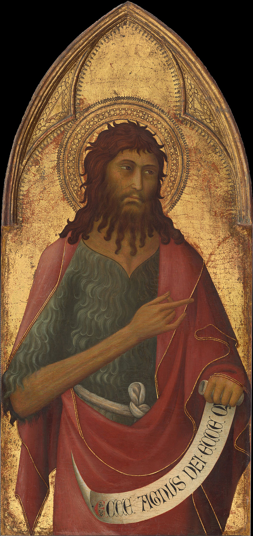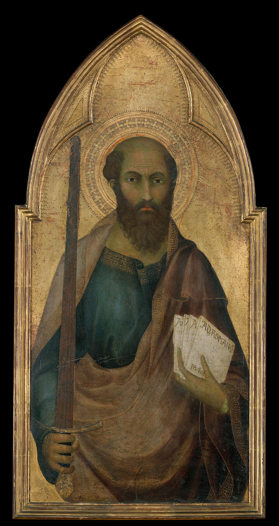 From its earliest mention in the Sterbini collection in Rome,1 the Griggs Saint John the Evangelist was consistently referred to as a work by Simone Martini2 and discussed as unrelated to any other known altarpieces or altarpiece fragments by Simone. Raimond van Marle described it as possibly a very early work by Simone, painted before he had developed his recognizable, mature style, but he acknowledged that, as it is not possible to document such a period in Simone’s career, the painting might also be the work of a close follower.3 Helen Comstock first noted that it must have formed part of the same altarpiece as panels representing Saint Paul in the Metropolitan Museum of Art, New York (fig. 2); Saint Peter in the Musée du Louvre, Paris (fig. 3); Saint John the Baptist in the National Gallery of Art, Washington, D.C. (fig. 4); and Saints Louis of Toulouse and Francis in the Pinacoteca Nazionale, Siena (figs. 5–6).4 Several of these, chiefly the New York and Paris panels, had previously been attributed to Lippo Memmi, and Comstock presumed, therefore, that the altarpiece was a collaborative effort between Simone and his brother-in-law, Lippo. Acknowledgment of Comstock’s reconstruction came from Federico Zeri, who rejected outright the possibility of considering the Griggs panel as a work by Simone, attributing it and the Saints Peter, Paul, and John the Baptist unequivocally to Lippo Memmi.5 This contention has not been seriously challenged other than by Charles Seymour, Jr., who wondered if the superior quality of the Griggs panel might not indicate the authorship of the supposed “Barna da Siena.”6 Seymour might, in this respect, have been mirroring Bernard Berenson’s brief flirtation with assigning the New York Saint Paul to “Barna,” a suggestion that Berenson subsequently withdrew.7 Later scholarly literature has not revived this proposal, other than an oblique reference by Alessandro Bagnoli, where the altarpiece is assigned to Lippo Memmi and his brother Federico, an encoded reference to its affiliation with the supposed “Barna da Siena.”8