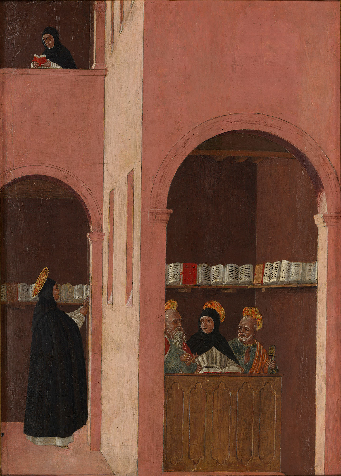 Benati’s thesis was embraced, for the most part, by Andrea De Marchi, who did not distinguish between the hand of the two brothers in the Thomas Aquinas dossal but maintained Longhi’s attribution of the Coronation of the Virgin to Agnolo.45 In the most recent examination of the Thomas Aquinas series, however, Joseph Manca reiterated Longhi’s division of hands and attributed the Washington Dominican Preaching to Agnolo, emphasizing the different approaches of the two brothers to both spatial and luministic effects.46 Manca concurred with a dating of the Saint Thomas Aquinas altarpiece around 1470.