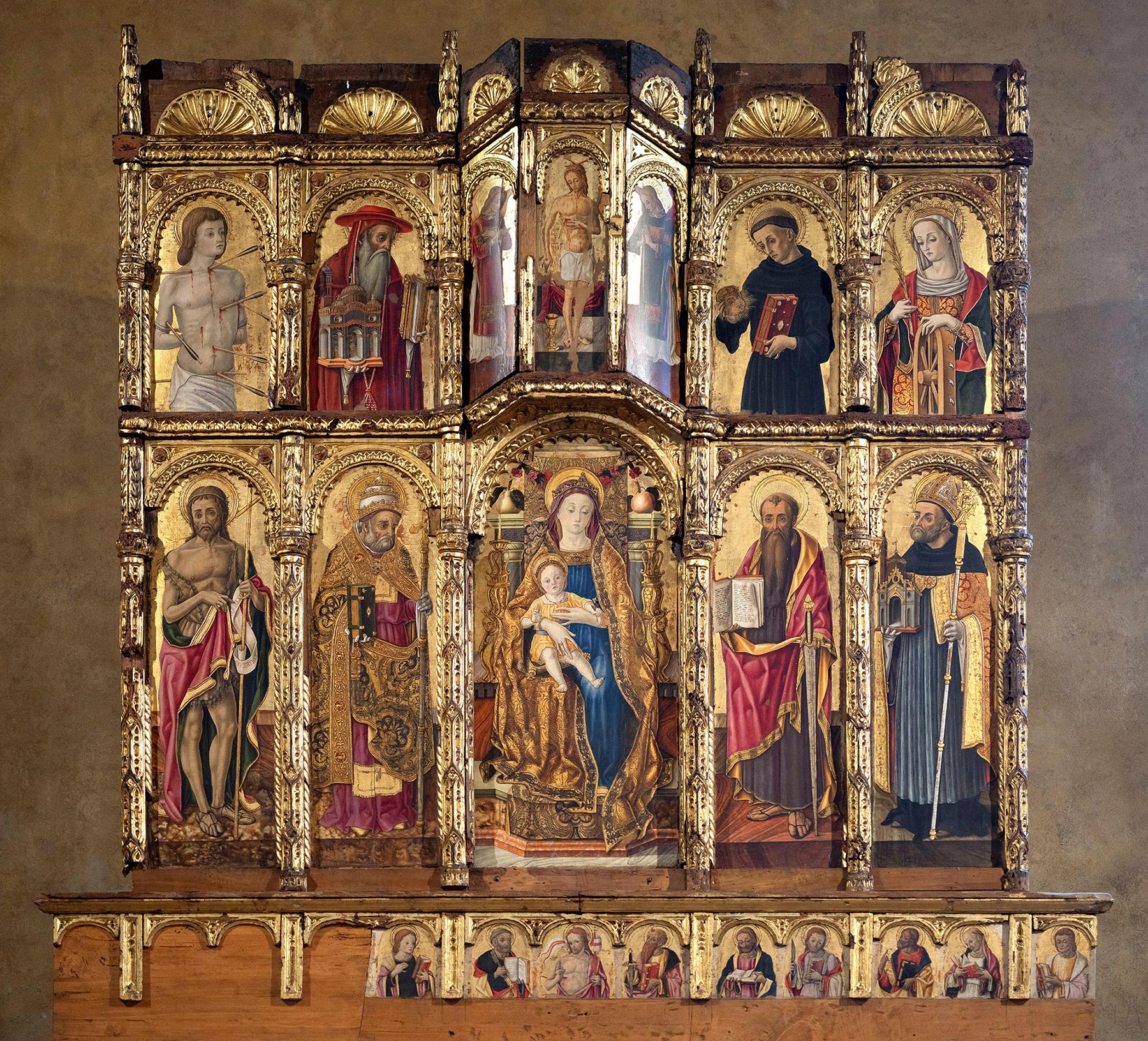Di Provvido, Sandra. La pittura di Vittore Crivelli. L’Aquila: Japadre, 1972., 120–21; and Di Provvido, in Papetti, Stefano, ed. Vittore Crivelli e la pittura del suo tempo nel Fermano. Milan: Federico Motta, 1997., 208–9. The Torre di Palme Polyptych is still located in the church of Sant’Agostino, Fermo. All the surviving fragments of the Eufreducci Polyptych are now in the Philadelphia Museum of Art; inv. no. W1896-1-11a-e, https://philamuseum.org/collection/object/104378. ↩︎