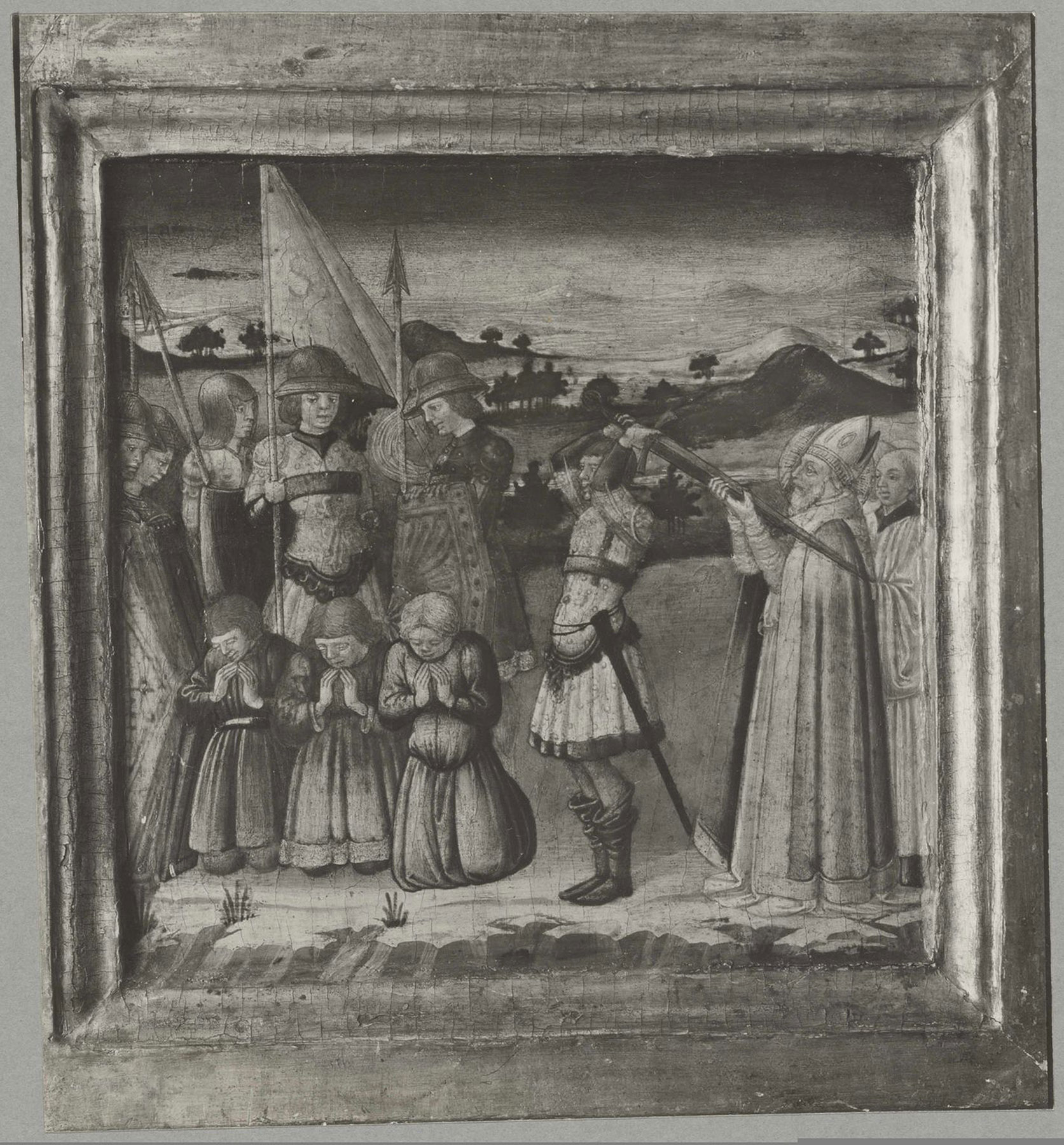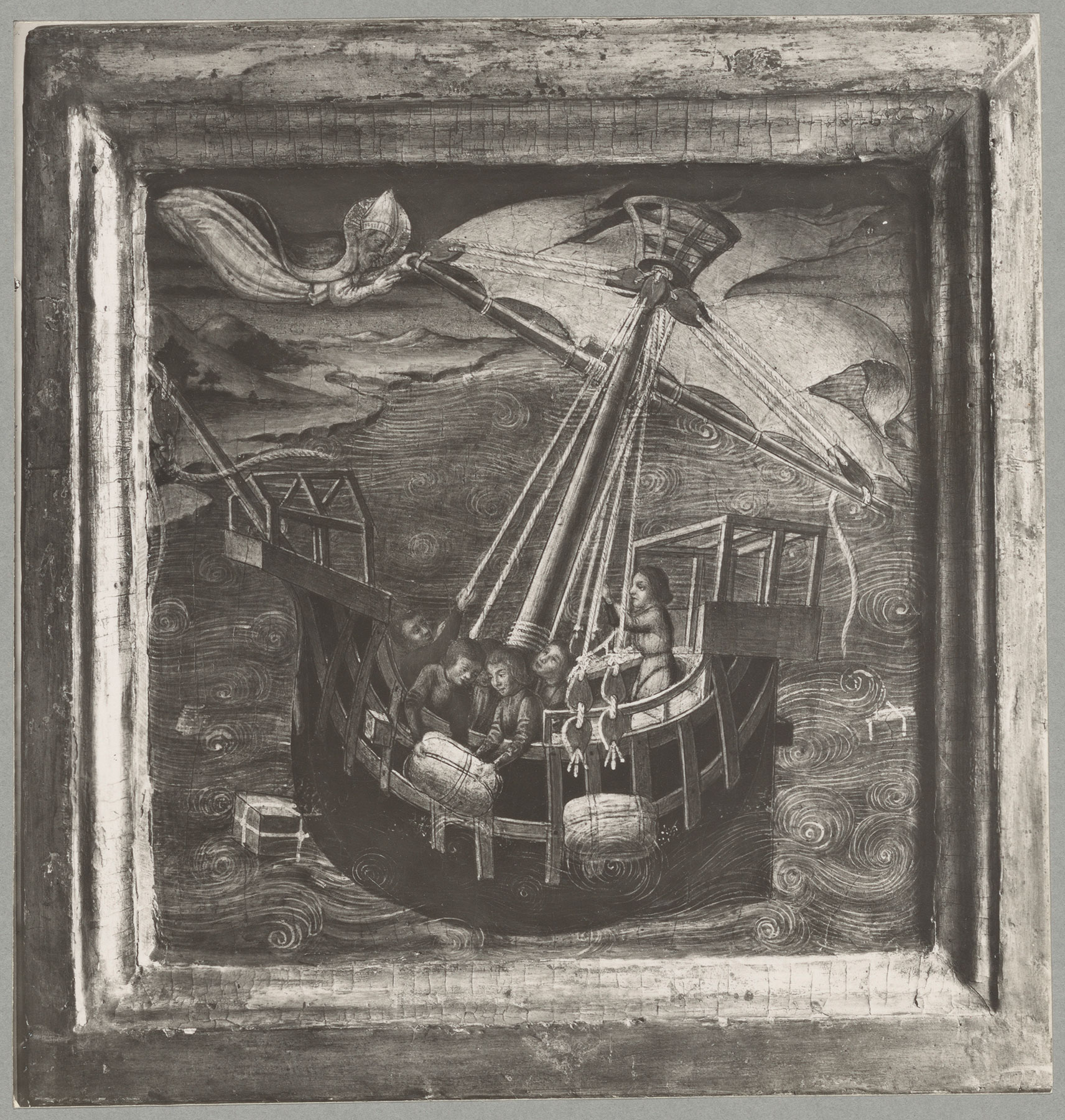 Since its first publication by James Jackson Jarves in the 1860 catalogue of his collection, the Charity of Saint Nicholas of Bari has been recognized as a typical work by Neri di Bicci.2 Jarves did remark that “on account of the archaic character of this little painting, several critics attribute it to Cimabue, to whose figures these bear considerable resemblance in design”; this eccentric observation appears nowhere else in print. For William Rankin, the Charity was an “insignificant panel,”3 while Osvald Sirén thought it “one of Neri di Bicci’s most refined and attractive creations.”4 It elicited little more than acknowledgment of its existence in subsequent references to it. A note on the photograph of the painting in the Frick Art Reference Library, New York, records that, in 1941, Jan Leyda associated it with two panels of similar size formerly in the Toscanelli collection at Pontedera, near Pisa, showing further miracles of Saint Nicholas: Saint Nicholas Calming a Tempest at Sea (fig. 1) and Saint Nicholas Preventing the Execution of Three Innocent Soldiers (fig. 2).5 The reconstruction of these three panels as fragments of a single predella was repeated in 1970 by Charles Seymour, Jr.,6 who, however, did not mention a second opinion recorded in 1965 at the Frick Art Reference Library that the predella might have stood beneath a triptych by Neri di Bicci in the church of San Lorenzo a Miransù at Rignano sull’Arno, near Florence (now Villa di Castiglionchio, Pontassieve), showing the Virgin and Child Enthroned with Saints Nicholas of Bari and Lawrence.