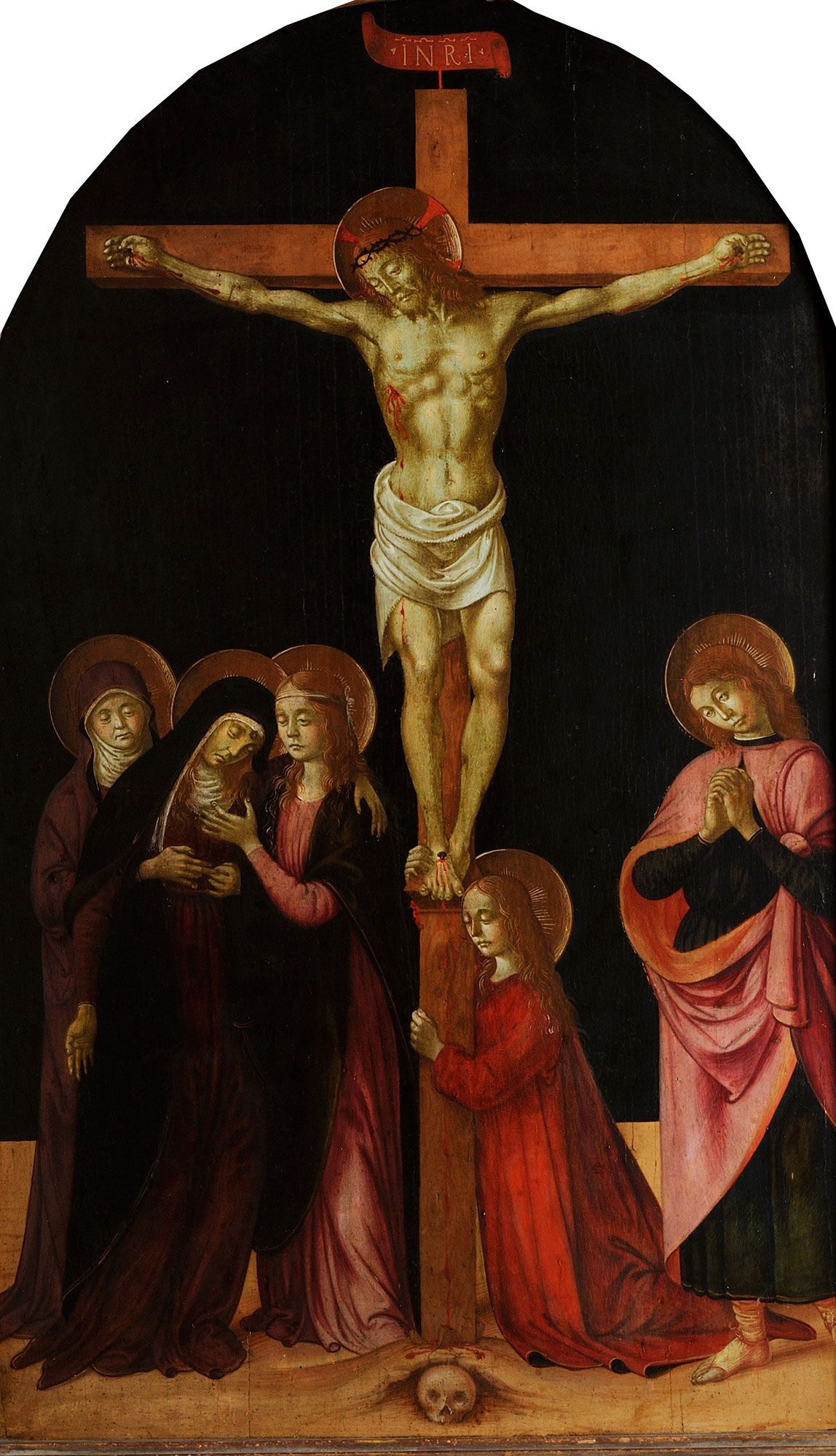 Attributed without comment to Andrea Mantegna by James Jackson Jarves, this Crucifixion was returned to the Florentine school by William Rankin who, however, proposed no definite identification for it.1 Osvald Sirén first called attention to its striking relationship to the work of Andrea del Verrocchio by citing similarities of drawing and detail to several paintings then thought to be by an anonymous but distinctive apprentice in Verrocchio’s studio, christened the “Pseudo-Verrocchio.”2 Most of these, although not the Yale Crucifixion, were later swept into the ongoing debate over Verrocchio’s identity as a painter, and two that had been called out by Sirén as especially close to the Yale panel—a Virgin and Child in Berlin and a Raphael and Tobias in London3—are currently believed to be core works in the small group of paintings accepted as autograph examples of Verrocchio’s style.4 Charles Seymour, Jr., himself the author of a monograph on Andrea del Verrocchio, did not add to this discussion, commenting only that the designation Pseudo-Verrocchio “in recent years has declined in scholarly usefulness.”5 He accepted a suggestion for which he credited Everett Fahy and listed the painting as “attributed to Biagio d’Antonio.”6 Fahy’s attribution ultimately appeared in print in 1976, in the Garland Press edition of his doctoral dissertation written for Harvard University.7 Although it was not accepted by Federico Zeri, who listed the painting as by Lorenzo di Credi, and was rejected outright by Roberta Bartoli in her monograph on Biagio d’Antonio, Fahy’s identification is correct.8