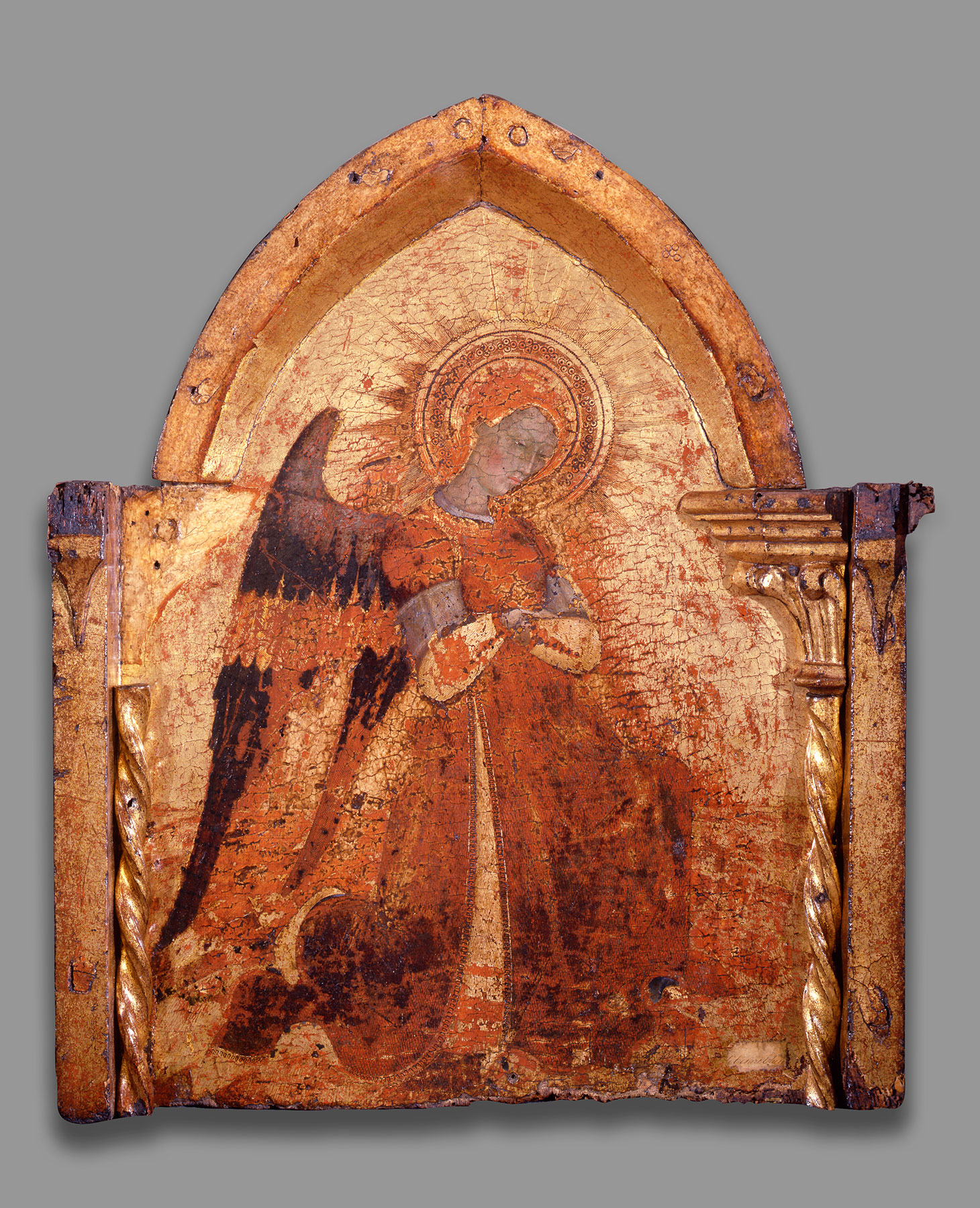 Two proposals have been advanced to identify the original provenance of the altarpiece of which the Louvre, Monte dei Paschi, Yale, and Massa Marittima panels formed part. For Israëls, a likely candidate is the Petroni Chapel in San Francesco, Siena, which was described by Fabio Chigi in 1625 as containing an altarpiece signed by Sassetta.16 Although the surviving panels are not overtly Franciscan in iconography, Israëls argued that the uniformly deteriorated condition of all four fragments might be the result of a fire that ravaged the church in 1655 and that the Petroni altarpiece may have been commissioned by Francesca di Francesco di Spinello Tolomei to commemorate the name-saints of her deceased husband, Niccolaccio di Caterino Petroni, and her son, Antonio Petroni. An alternative suggestion by Roberto Bartalini links the two panels with an altarpiece described by Teofilo Gallacini (1564–1641) in the church of San Niccolò in Siena.17 Neither work is associated with a date in early sources. To these possibilities, Elena Marta Manzi adds a less probable third: a church in Massa Marittima, where the Angel pinnacle, the first of the four fragments to be rediscovered, was recorded as early as 1900.18 —LK