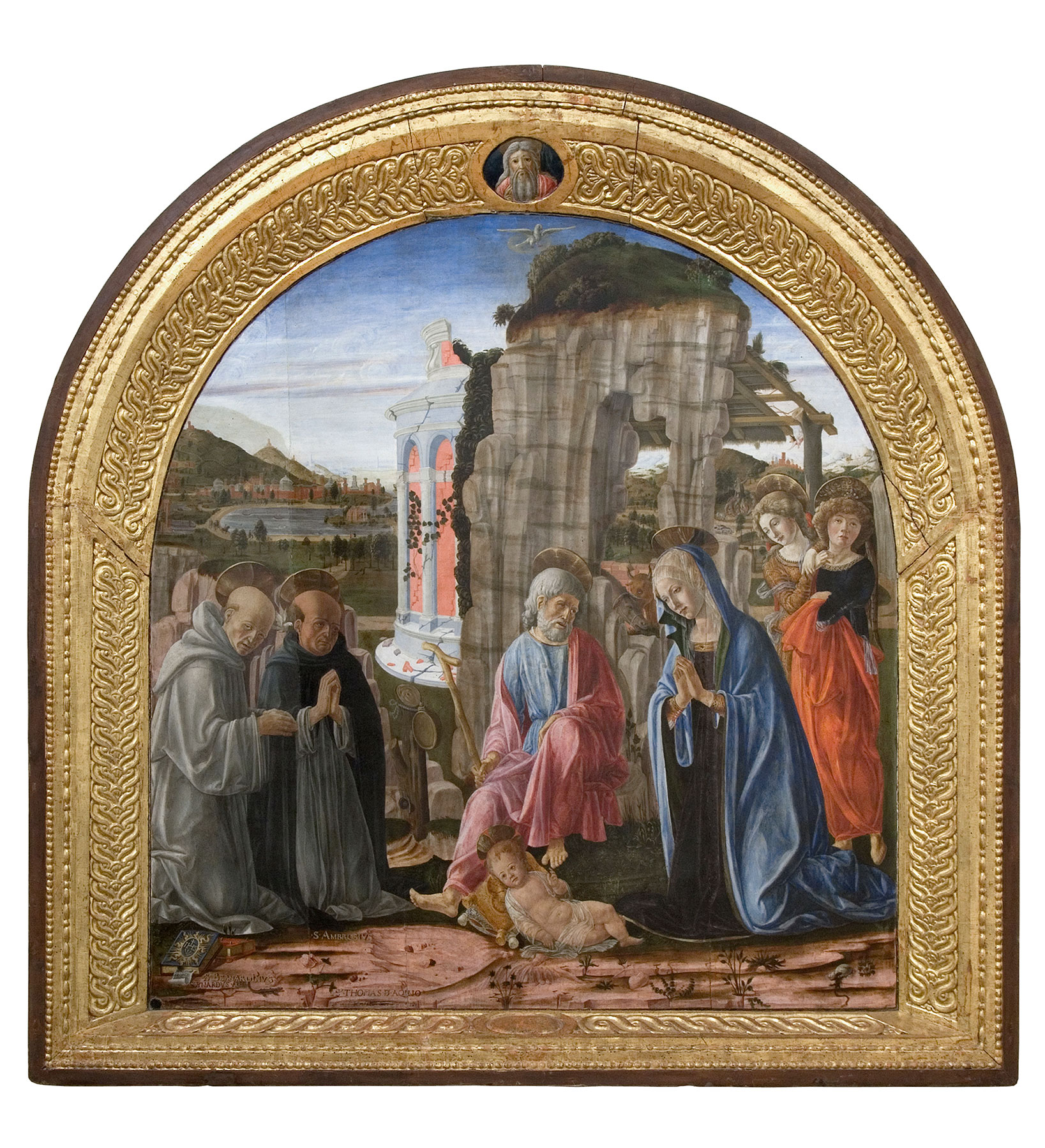 The altarpiece was commissioned on April 12, 1475, and is usually discussed as having been painted shortly afterward. See Alessandro Angelini, in Bellosi, Luciano, ed. Francesco di Giorgio e il Rinascimento a Siena, 1450–1500. Exh. cat. Milan: Electa, 1993. , 314–17. Fabio Chigi, however, in 1625–26, recorded the inscription “Franciscus Georgii 1480” on the painting, and Gabriele Fattorini has recently suggested that such a date, implying a prolonged execution, could explain the predominant use of an oil technique following Francesco di Giorgio’s exposure to the paintings of Justus of Ghent and Pedro Berrugquete in Urbino. See Gabriele Fattorini, in Angelini, Alessandro, Gabriele Fattorini, and Giovanni Russo, eds. Federico da Montefeltro e Francesco di Giorgio: Urbino crocevia delle arti. Exh. cat. Venice: Marsilio, 2022. , 53–54. ↩︎