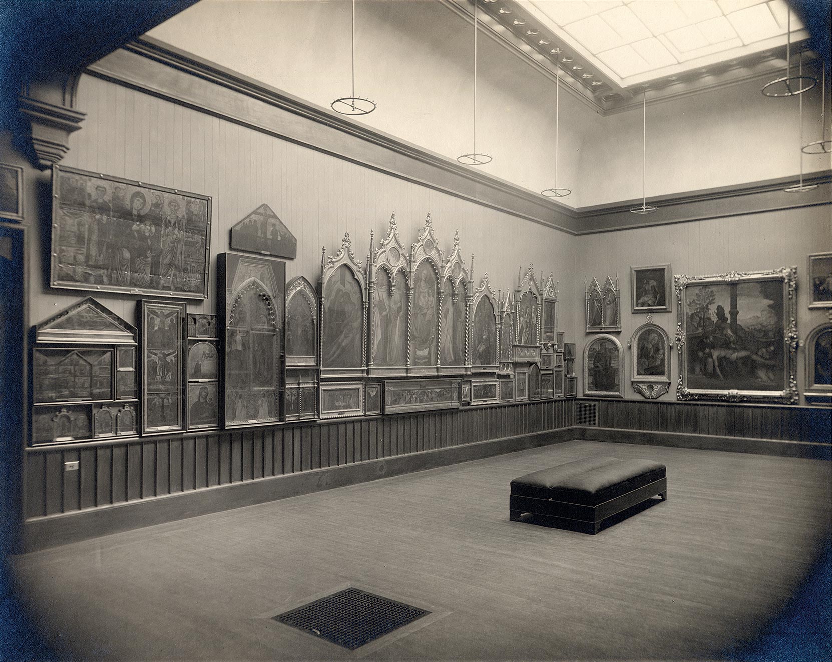 The Jarves Collection remained as it was in Street Hall, displayed as Jarves himself had arranged it, for nearly a quarter century, until 1892, little known and scarcely used outside the School of the Fine Arts. A modest rehang in 1892 (fig. 3) may have led to the appearance in 1895 of the first critical survey attempting to reconsider some of the naive attributions “to the foremost names in the History of Art” that Jarves and his proxy, Russell Sturgis, Jr., had attached to the paintings, but even this did little either to push serious scholarship forward or to bring the collection to the attention of a wider and more committed public.10 It could not be more revealing than to learn that the great American pioneer of Italian studies, Bernard Berenson (1865–1959), had not yet felt compelled to visit Yale to see the Jarves Collection when he published the first edition of his Florentine Painters of the Renaissance in 1896, an oversight he rectified only for subsequent editions in the following decade. But the early years of the twentieth century finally saw the reputation of the works on view in Street Hall cast in a more positive light—perhaps not coincidentally alongside the phenomenal rise in popularity of the Sienese school of painting, in which the Jarves Collection is singularly rich, following the great exhibitions in Siena and London in 1904.11 Shortly after the collection was moved into a newly built wing of Street Hall, in 1911, it was visited by Frank Jewett Mather, Jr. (1868–1953), who held the Professorship of Art and Archaeology at Princeton University, in New Jersey, and was later (1922) to be appointed the second director of the Princeton University Art Museum. Mather contributed a warmly appreciative survey of the Jarves pictures to the Yale Alumni Weekly in 1914 that may be said to have secured the attention of authorities at Yale in language they could not fail to understand. Of the University’s 1871 purchase, he wrote: