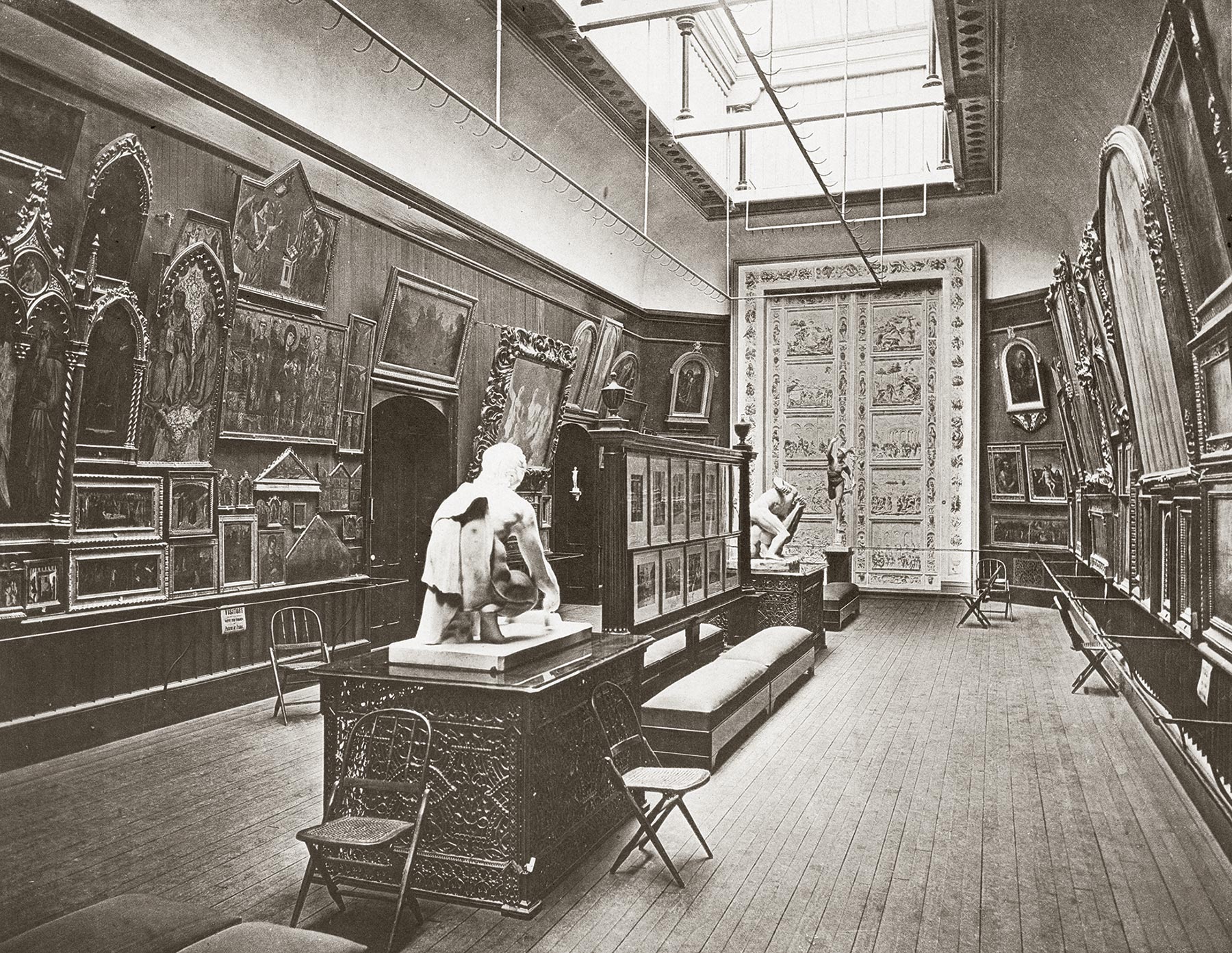 The complete apathy with which Jarves and his collection were greeted in America should, in hindsight, be anything but surprising. Scarcely half a dozen collectors in England, France, and Germany had preceded him in his interests, and only in London were any public institutions prepared to venture down this eccentric path with an outlay of funds. American critics and their reading public might agree with Jarves that raising the national levels of cultural literacy would be a good thing, but apparently only three men—Packard, Salisbury, and Norton—agreed with his prescriptions for achieving this desirable goal. Even with the backing of two influential members of faculty and of the Dean of the School of the Fine Arts, John Ferguson Weir, the reception of the Jarves collection at Yale was uncertain, and it was opened to the public only after a delay of half a year, in May 1868 (fig. 2), for fear of ridicule and accusations of fiscal impropriety.